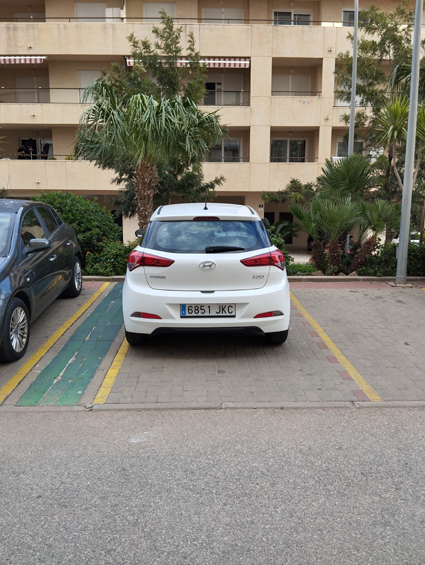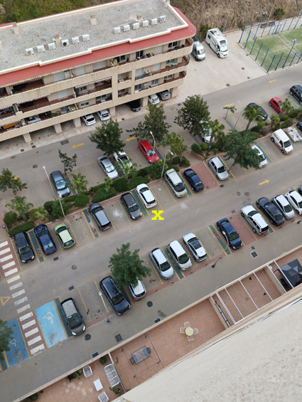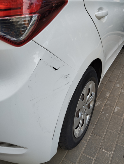 Table of Contents. Damage To My Hyundai i20, 2023-10-29. ![]() ![]() ![]() My Hyundai i20 was parked at the yellow X during the night 28th - 29th October. On the 2023-10-28 around 3 pm I parked my Hyundai i20 in the parking lot belonging to my residential complex. The area is gated. You have to pass the gate when exiting and entering. It is opened using a code or a remote controlled electronic opener. There is a surveillance camera at the gate. On 2023-10-29, at 1 p.m., I discovered a damage to the right rear fender. The damage has been done intentionally. It is not another vehicle that "unfortunately" caused the damage. It is primarily the car's paint that has been damaged. The fender is slightly pressed in, about 5 mm. The force that caused the damage comes from a flat surface. There are no small dents in the damage. There are no deposits of paint from another vehicle. My hypothesis is that some type of service vehicle that had a front or rear mounted bucket intentionally caused the damage. It took place during the night between October 28 and 29. |
