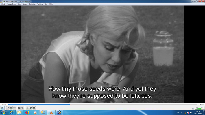 Monroe makes a very fine actor´s contribution to the movie. She still has to be considered as one of the great in film. After the assassination of James Dean (1955), Jehovah´s was aware of Monroe's vulnerable position. They have tried to "link" her to Sixten and I. Well thought out but it totally failed. Sixten thought Monroe was a "gifted person." The film is filled with symbolism to associate with Jehovah's insemination activities. It is logical that Monroe participates in a movie in which the breeding animal horse has a prominent role.