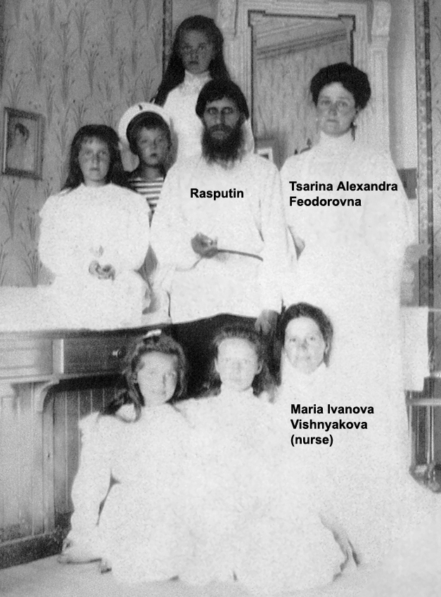 I have reviewed the photographic material available on the Internet to investigate, if possible, Rasputin's role in the Tsarist family.