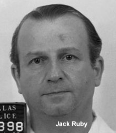 Lee Harvey Oswald is shot by the criminal nightclub owner Jack Ruby. Note that there are people behind Oswald. It is likely that Ruby was equipped with a revolver that had a weak charge. The shot would not penetrate Oswald and then hit others. Oswald didn´t die from the shot. He was murdered in the ambulance or in the hospital. The Police Officer who stands to the left of Oswald has a bright suit to mark that he is not a target.