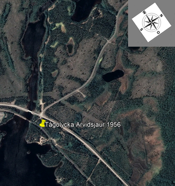 Akkavare and Arvidsjaur. The collision occurred at the red X, near