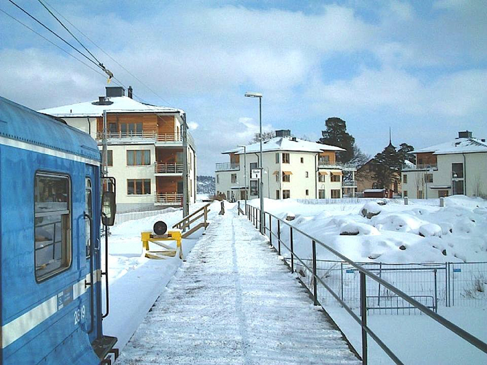 in traffic at the railway section Saltsjöbanan. A