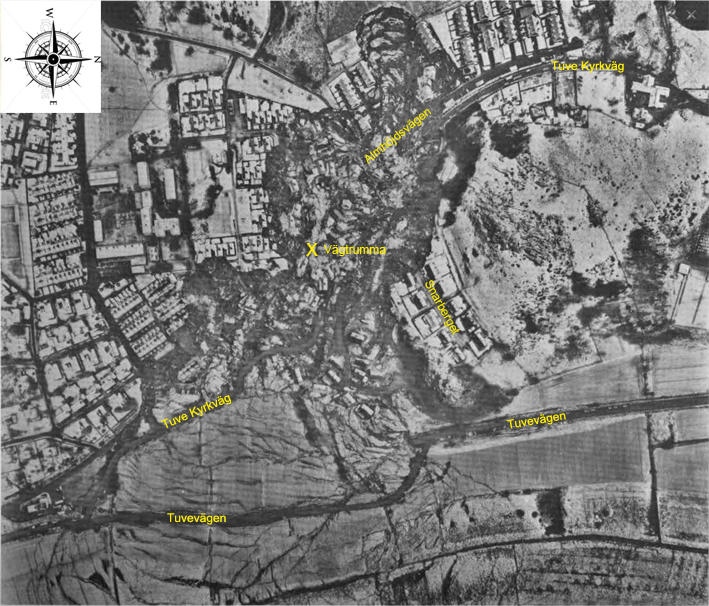 above. Parts of the Tuve Kyrkväg collapsed in a